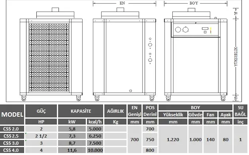 CSS-2.0 Chiller Su Soğutma–5.000 kcal/h / 5,8 kW